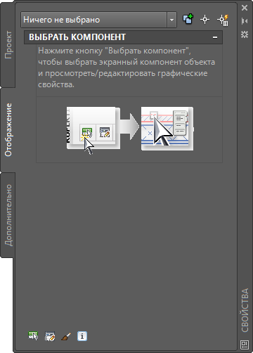 • Если объект не выбран, в нижней части вкладки "Отображение" нажмите , а затем выберите экранный компонент в области рисования.