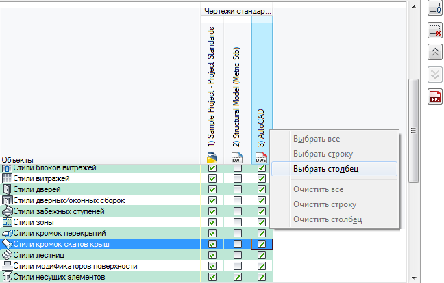 В списке "Чертежи стандартов" добавьте новый чертеж стилей. Порядок столбцов (слева направо) определяет порядок поиска и приоритет во время синхронизации. Чтобы изменить порядок чертежей, следует выбрать имя чертежа в заголовке столбца и щелкнуть