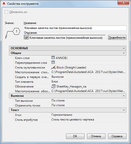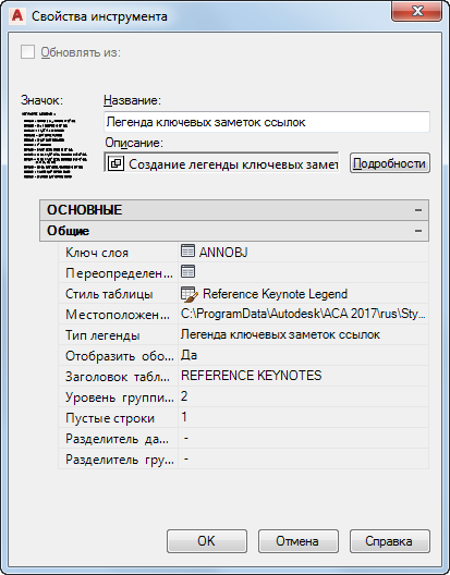 . Такие инструменты вставки ключевых заметок создаются из основного инструмента аннотаций и могут быть отредактированы в соответствии с требованиями конкретного проекта через таблицу "Свойства инструмента", в которую можно войти из контекстного меню.