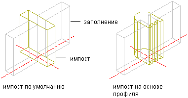 Выравнивание заполнения по отношению к стандартным импостам и импостам, построенным на основе профиля