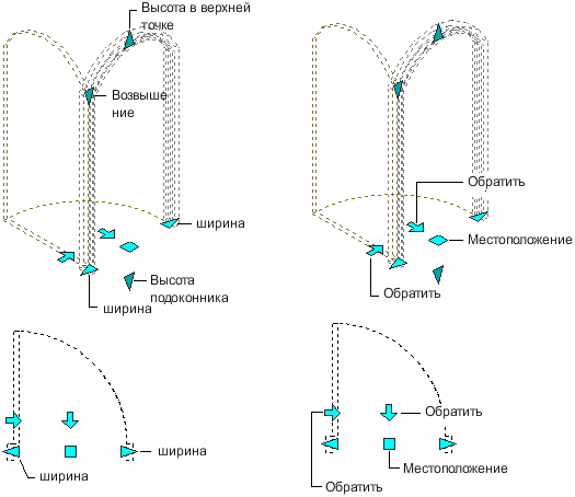 Возвышение Параметр "Возвышение" применим к дверям пятиугольной, сводчатой и готической формы. |