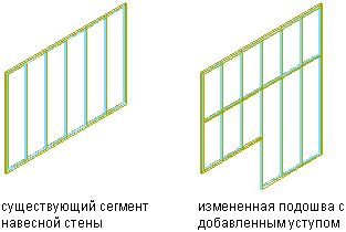 Данная процедура предназначена для того, чтобы добавить уступ к линии крыши или подошвы витража. Можно также добавить уступ в электронную таблицу данных "Линия крыши/Подошва" в палитре свойств.