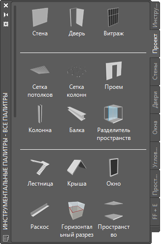 Инструменты крыш со свойствами, настроенными в соответствии с проектами или стандартами организации, могут также находиться на пользовательских палитрах, созданных администратором САПР или другими пользователями.