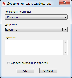 Эта процедура используется для создания тела-модификатора с целью замены компонента лестницы.