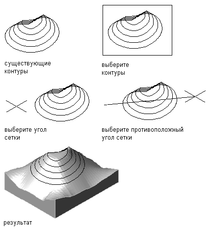 сформировать поверхность, определяемую на основе экспортируемых контуров и точек (триангуляция Делоне), введите n (нет) для позиции "Сгенерировать обычную сетку [Да/Нет]".