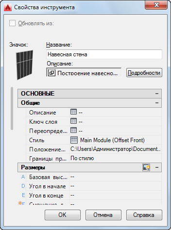 • Выберите инструмент, щелкните правой кнопкой и выберите "Импортировать стиль <Имя стиля> <Объект>". Например, если требуется добавить в чертеж стиль стены CMU-190, следует нажать "Импортировать стиль стен CMU-190".
