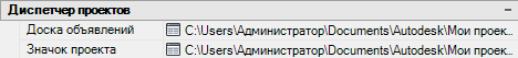 - В составе категории "Дополнительные" определите или измените свойства проекта в категории Диспетчер проектов.