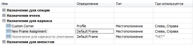 Эта процедура используется для добавления назначения для каркаса оконной/дверной сборки. Чтобы назначить различные определения разным границам каркаса, необходимо иметь в распоряжении несколько назначений для каркасов.