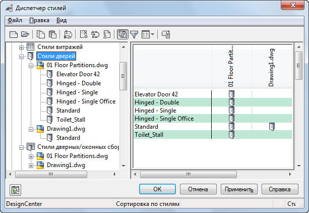 Стили стандартов проекта в Диспетчере стилей