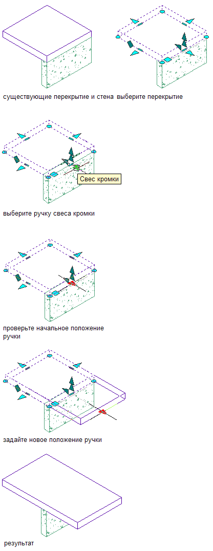 Изменение свеса кромки перекрытия с помощью ручки свеса кромки