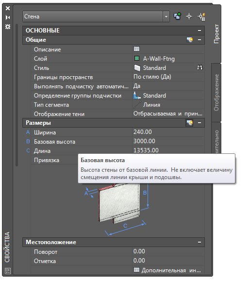 Подсказки на палитре свойств отображаются тогда, когда курсор остановлен на каком-либо свойстве в списке.