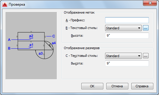 Данная процедура позволяет настроить параметры текста для марок и размеров кромки, отображаемых для подчиненных элементов после разбивки пространства.