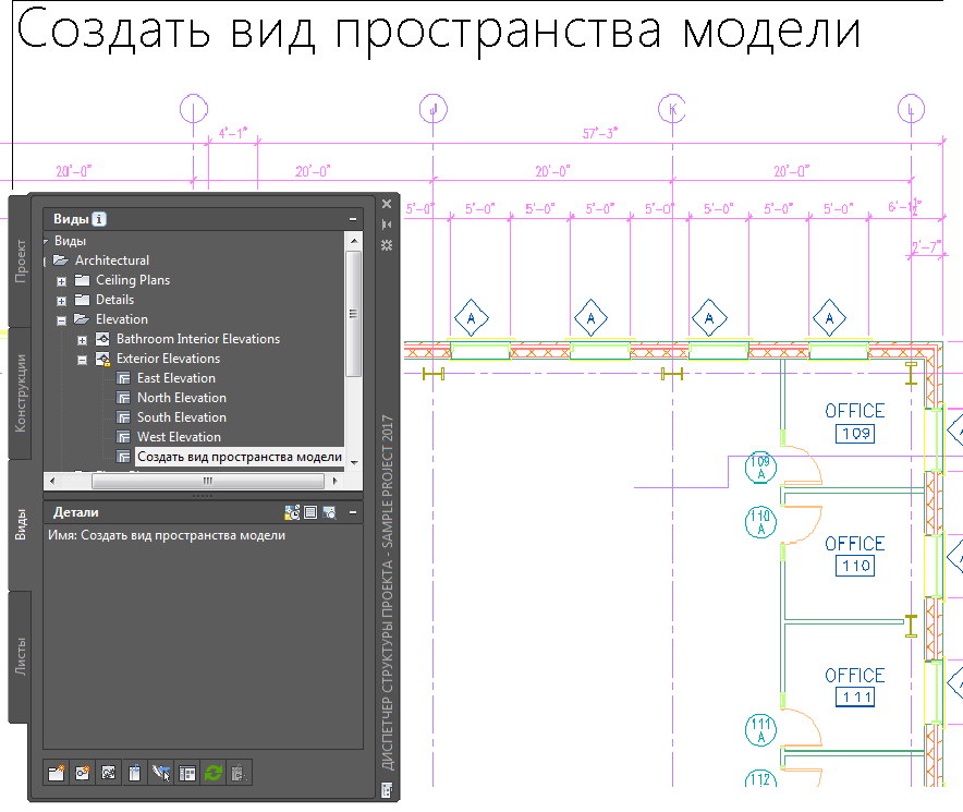 Шаблон вида по умолчанию следует сохранить, так чтобы он позволял создать чертеж, открывающийся на вкладке модели. При создании нового чертежа вида все конструкции, назначенные на него, будут вставлены в данный чертеж с помощью ссылок. Если шаблон не открывается при активном пространстве модели, здание будет вставляться по ссылке в пространство листа.