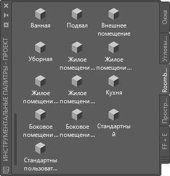 Инструментальная палитра Roombook содержит различные стили материалов поверхности. Команды связаны с файлом
