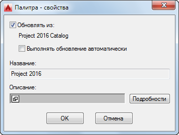 Если установлен флажок "Включить автоматическое обновление", каждый запуск приложения будет сопровождаться обновлением любых связанных инструментальных палитр каталога с учетом любых их изменений или изменений их компонентов.
