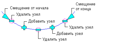 Узлы можно добавлять только к тем разметочным кривым, для которых расстояние между узлами установлено вручную или для равноотстоящих друг от друга узлов. Разметочные кривые с расположением узлов на фиксированном одинаковом расстоянии друг от друга нельзя изменить, не меняя длину кривой или расстояние от первого узла.