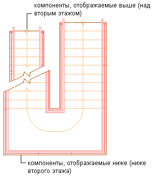 Существуют новые возможности, обеспечивающие поддержку представления компонентов лестницы над отметкой секущей плоскости, и таким образом нижние компоненты лестницы используются только для отображения компонентов, расположенных ниже текущего уровня.