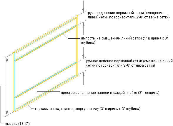 | Импосты | Ребра между ячейками шириной 1 дюйм и глубиной 3 дюйма |