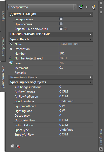 В этот набор свойств входят стили SpaceEngineeringObjects, ThermalProperties и ZoneEngineeringObjects.