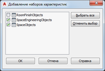 11. В диалоговом окне "Добавление наборов характеристик" выберите стили SpaceEngineeringObjects и SpaceObjects и нажмите кнопку "OK".