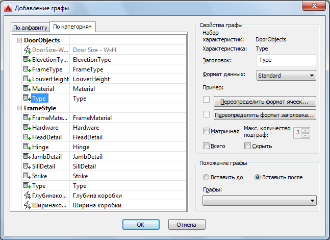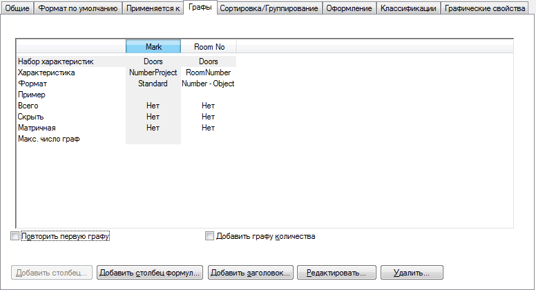 Также до добавления столбцов необходимо указать объекты, к которым относится стиль спецификации.