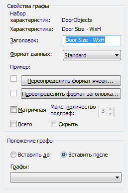 По умолчанию для заголовка столбца используется текст описания характеристики.