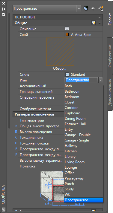 Описание списка - это список имен, которые допускается использовать для пространств или зон. Описания списков можно прикреплять к стилю пространств или стилю зоны. Как следствие, доступ к списку имен осуществляется с палитры свойств при создании или редактировании пространства или зоны с определенным стилем.