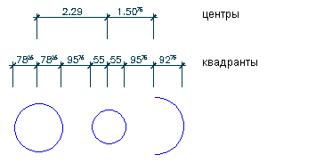 | Центр | Определяются расстояния между центрами дуг объектов, образованных окружностями. Расстояния между центрами могут быть измерены для кругов, дуг и сегментов закругленных полилиний. |
