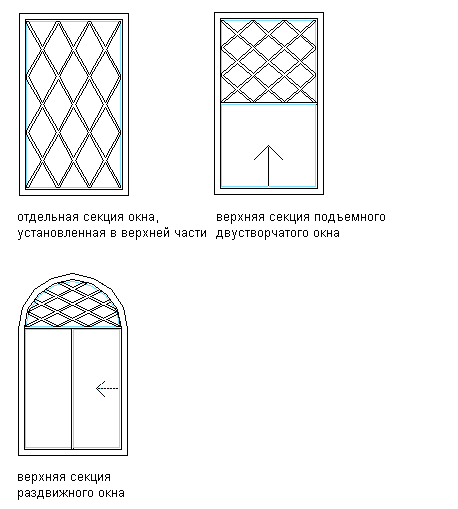 Можно использовать ромбовидный образец для всех форм и типов окон, кроме "Проходного".