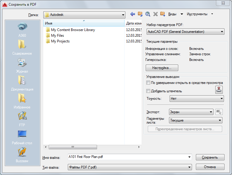 В диалоговом окне "Сохранить как" укажите информацию для файла PDF.