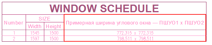 5. В области "Стили окон" выберите "Примерная ширина углового проема ПШУП1 х ПШУП2".