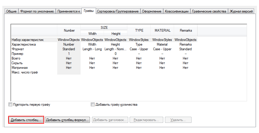 7. Перейдите на вкладку "Графы" "Добавить графу".