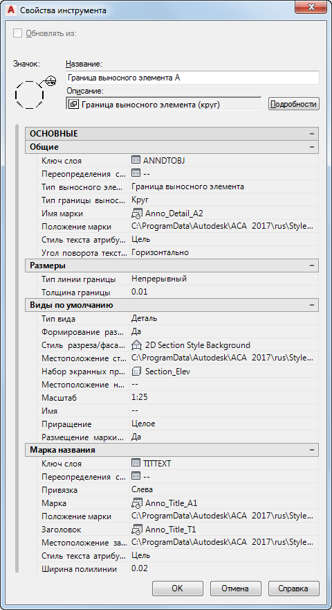 | Местоположение стиля разреза/фасада | Общий | Определение файла чертежа или шаблона, в котором постоянно содержатся доступные стили 2D разрезов/фасадов. |