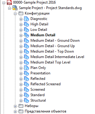 Стандартные параметры представления собраны в стандартном чертеже, который назначается проекту. После определения группы параметров представления в качестве стандартов проекта, при включении в проект чертежей устанавливается их связь со стандартами, и чертежи можно синхронизировать с ними. С помощью такой связи параметры представления в чертеже проекта могут также обновлять стандартные параметры представления.