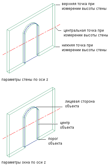 | измерить расстояние до подошвы проемов в стене, | выберите для параметра "До..." значение "Подоконник объекта". |
