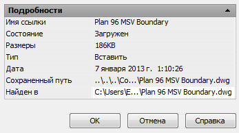 Прим.: Кроме того, можно вывести внешние ссылки на экран, открыв конструкцию в области чертежа AutoCAD Architecture и воспользовавшись Диспетчером ссылок AutoCAD.