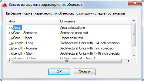 Параметры выбранного формата данных копируются в коды формата в поле.