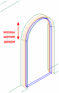 | Возвышение | применяется только для готической, арочной и пятиугольной форм дверей | Задается высота верхней точки двери. Иллюстрация![]() |