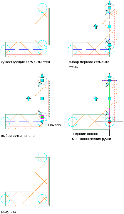 не пересекаются линии привязки сегментов стен, или одна линия привязки выходит за пределы круга подчистки соседней стены. Отрегулируйте длину одного сегмента стены так, чтобы конец его линии привязки не выходил за пределы круга подчистки соседнего сегмента стены.