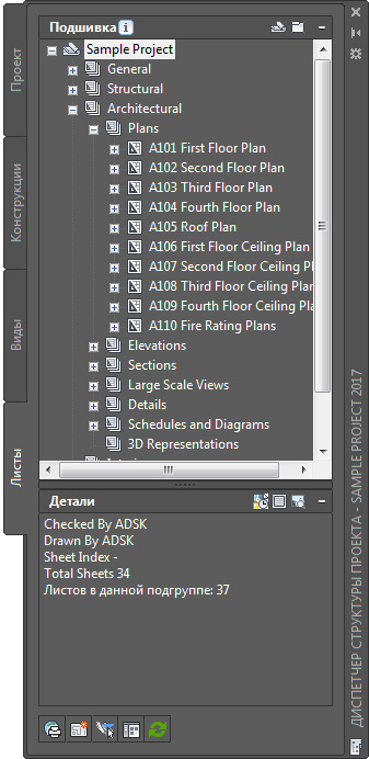 Подшивка проекта в Диспетчере структуры проекта AutoCAD Architecture