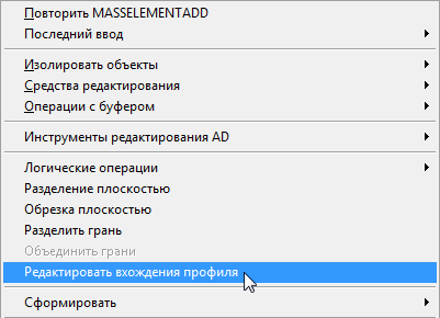 • Выберите команду "Редактировать профиль по месту" в контекстном меню объекта. Если у объекта есть несколько компонентов на основе профилей, сначала выберите соответствующее подменю, например "Профильные компоненты" "Контекстное редактирование".