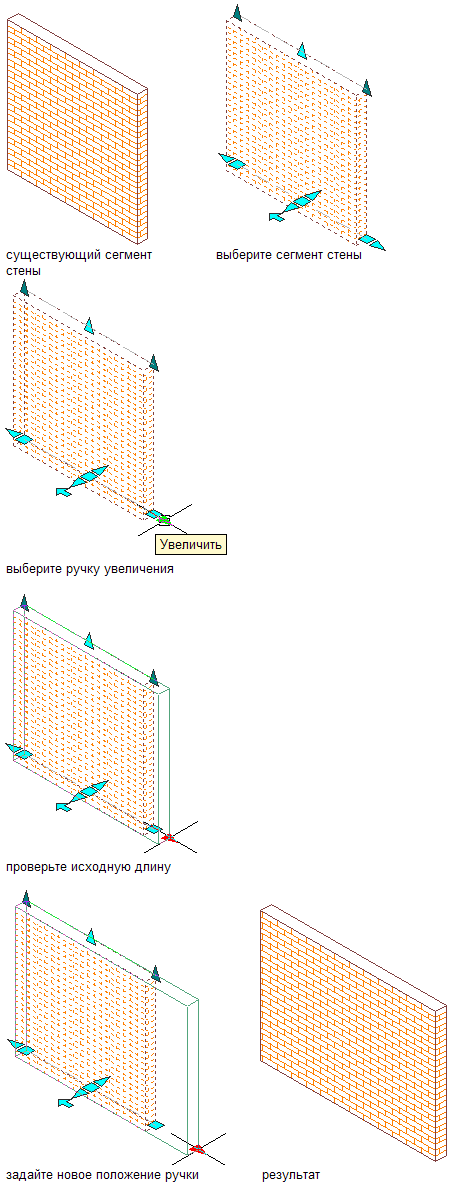 Для изменения длины стены с помощью ручек