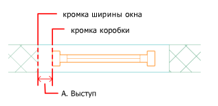 Выступ — это расстояние между кромкой по ширине окна и кромкой коробки.