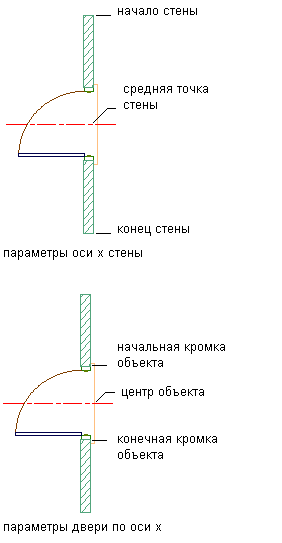 | измерить расстояние до начальных кромок дверей, | выберите для параметра "До" значение "Начальная кромка объекта". |