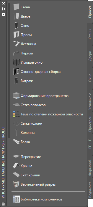 Палитра инструментов "Проектирование" с инструментами для работы со стандартными объектами проектирования
