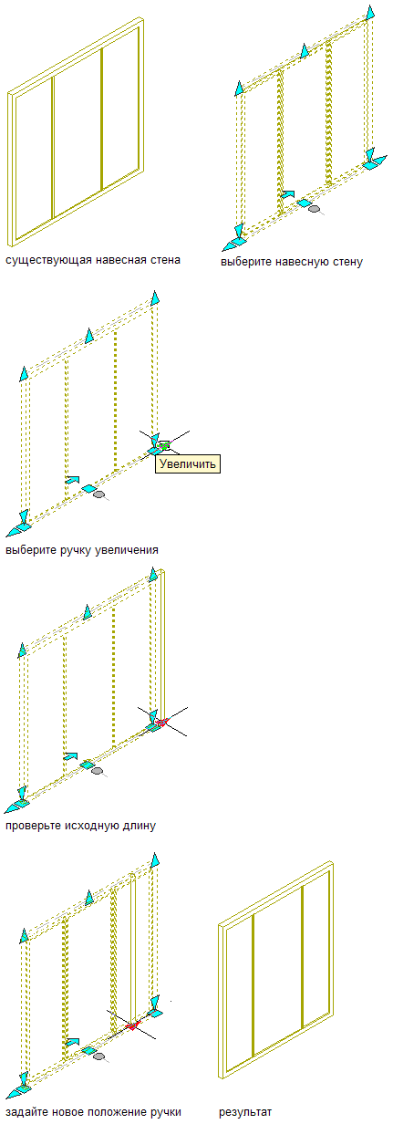 Данная процедура предназначена для изменения длины витража с помощью ручек.