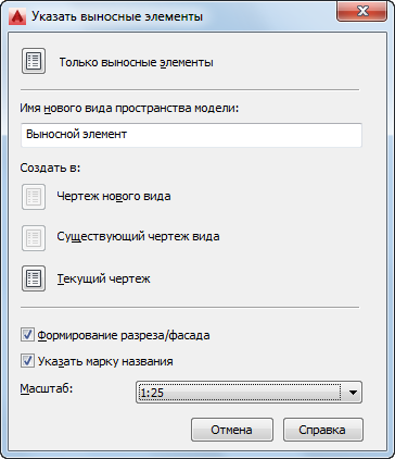разместить выносной элемент узла, вставьте инструмент, как описано в разделе "Создание детали на текущем виде чертежа".
