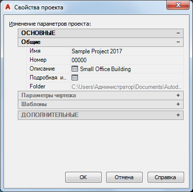 Данная процедура служит для определения или изменения основных свойств проекта. Основные свойства распределены на 3 категории: