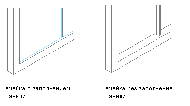 Данная процедура предназначена для того, чтобы удалить заполнение ячейки и оставить ячейку пустой. Для этого в качестве определения элемента следует использовать "Отсутствует". Использование определения "Нет" приводит также к удалению любых кромок каркаса, окаймляющих ячейку, но не влияет на импосты.