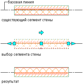 Наружные стороны стены остаются на месте, а базовая линия при необходимости сдвигается.